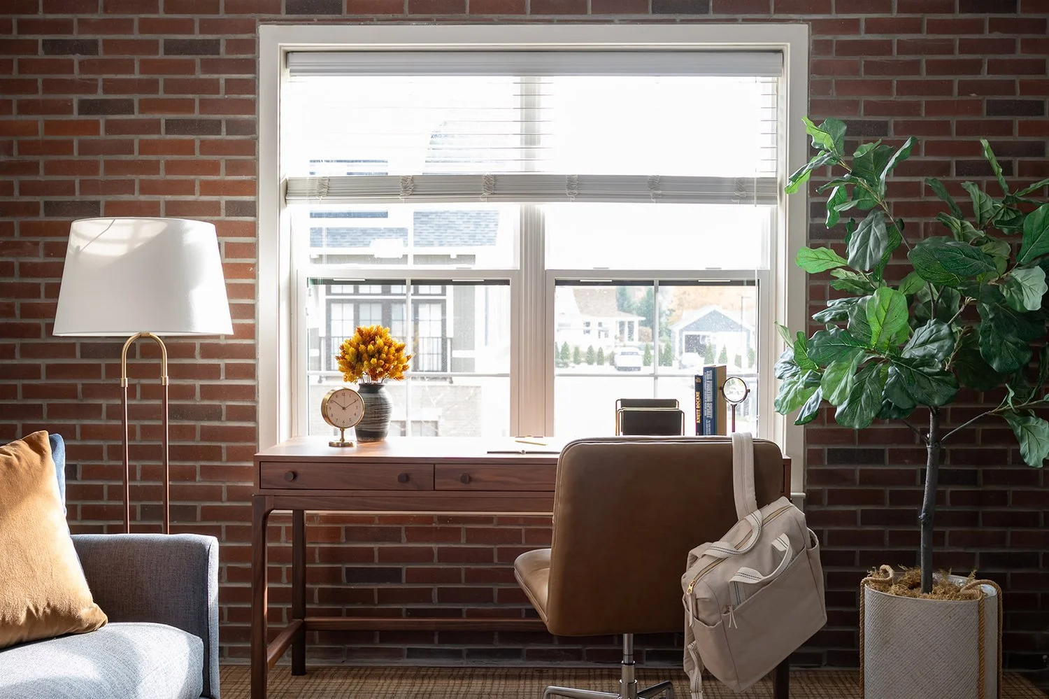 Tailored with a collegiate flair, warm palette